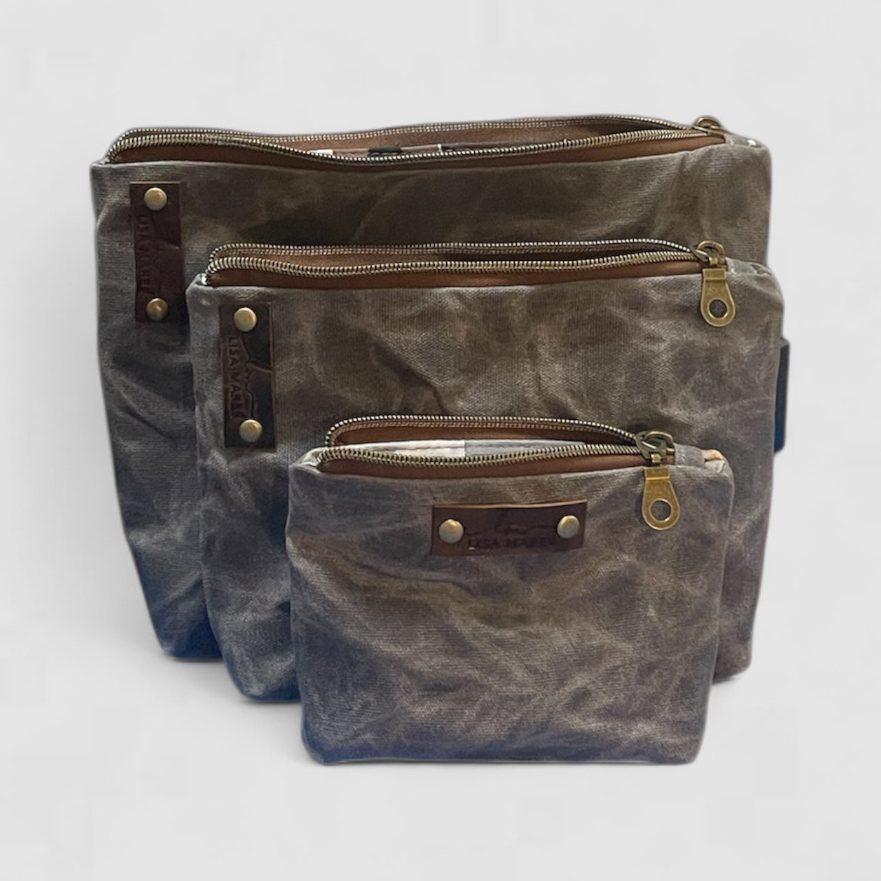 Our Elevé Trio is the greatest gift you can give to someone or gift to yourself.  The trio consists of our 3 zippered bags:  Eva, Eden and Ellie.  They all have been updated with contrasting bottom to bring you a bit of elevation.  If purchased separately, retail price is 100.00. You save 15$ when you buy all 3!  These are also packable, meaning, each one fits into the other.  Perfect for traveling as well.